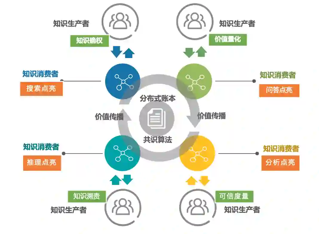 如前文所述,知识是有价值的,要解决知识生产和消费闭环中的价值量化、确权、溯源及可信度量等问题,就需要让知识上链,通过构建面向知识的区块链来解决诸多问题。具体而言,区块链之于知识有如下几个方面的价值: