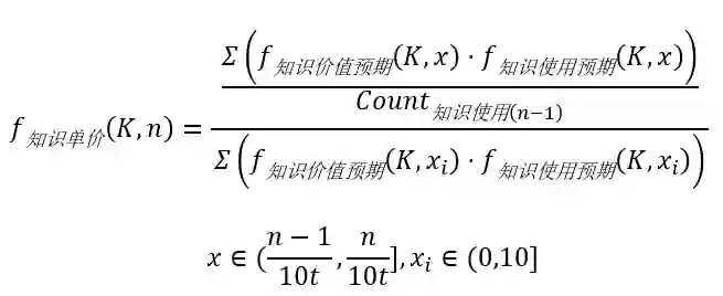 为第 n 天知识使用次数,知识点价值周期为 t(天),则第 n 天知识校准单价为: