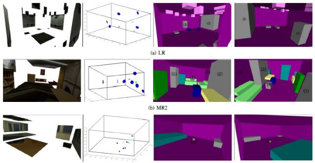 最后,将长方体代理安装到平面上以生成完整的房间模型。实验结果表明,无论透明窗口、特征墙和光亮表面,所提出的系统都能完整地表达房间结构。