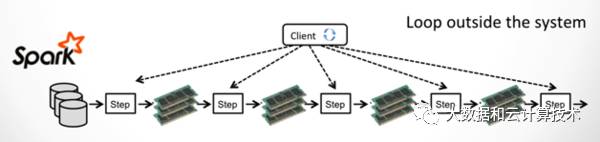 spark相比M/R计算模型差不多,关键是把数据放到内存中迭代。天生的batch模型,对于流处理,最早思路是通过减少batch粒度,也就是mini batch来支持,但同时也限制spark streaming能支撑的时延只能到到秒级,而flink通过增量迭代的能力,支持一次一条数据的处理,处理时延迟可以做到毫秒。最新的structure streaming号称也可以支持毫秒级处理了。下面三个图,对比下几种计算模型的区别: