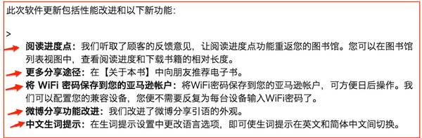1. 固件升级:亚马逊 Kindle 本月已将固件更新至 5.8.1,而 Kindle Paperwhite 1 及以前的机型已经停更了。建议大家购买新机的时候从第七代(Kindle Paperwhite 3、Kindle Voyage)往上走(第八代 Kindle Oasis、New Kindle),笔者第一时间便对自己的 Kindle 进行了更新。