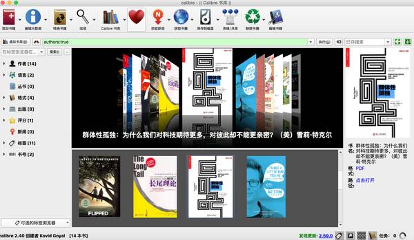Calibre 是一款电子图书管理软件,其提供「一站式」的电子书解决方案,可以满足你对电子书一切需求,甚至可以利用它组织成属于自己的电子图书馆。它的功能多种多样,不仅可以用它对图书进行格式转换,归类整理电子书,还可以将文本图像材料、在线内容(RSS)加入并转换为电子书。更重要的是 Calibre 是免费的、开源的,拥有跨平台的设计,可在 Linux,OS X 和 Windows 操作系统中运行,堪称电子书管理神器。
