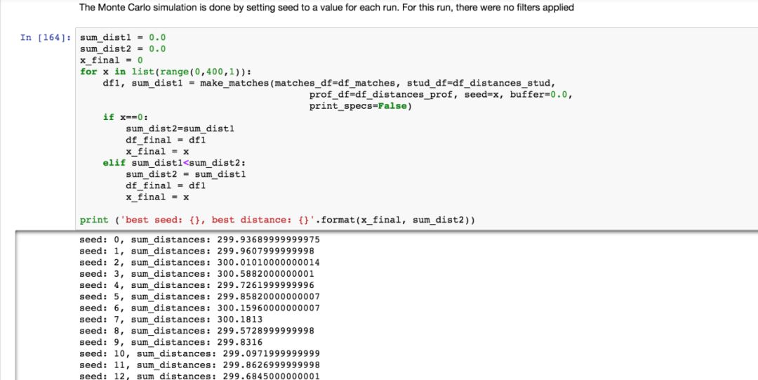 一个用户可能有多个相同最佳得分的匹配结果。我们通过随机抽样来进行配对。我们使用蒙特卡洛模拟来进行随机配对,进而得到给定的学生群体的最佳匹配集。