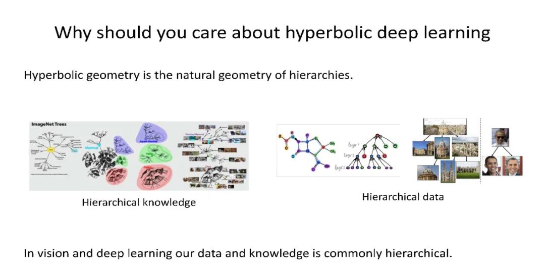 计算机视觉中的学习都是关于深度网络的,这种网络按设计在欧几里得流形上运行。但欧几里德几何是深度学习的最佳选择,还是仅仅是一个实用的选择?最近机器学习和计算机视觉方面的文献表明,双曲几何提供了一个强有力的替代方案,它可以改进嵌入层次结构、图表、文本、图像和视频的能力。