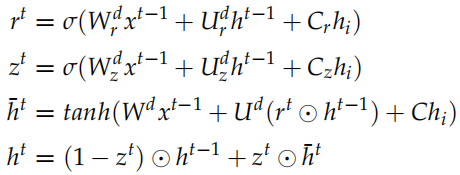 可以看成对整个句子语义的编码。t 时刻 GRU 的计算公式为: