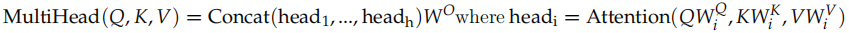 这篇论文还提出了 Multi-Head Attention 的概念。其实很简单,前面定义的一组 Q、K 和 V 可以让一个词 attend to 相关的词,我们可以定义多组 Q、K 和 V,它们分别可以关注不同的上下文。