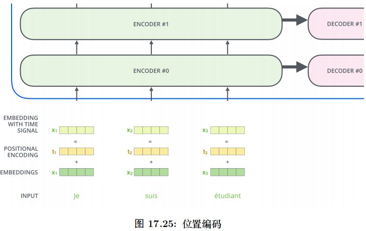 图17.6更加明确的表达了这一点。图中 Self-Attention 层是一个大的方框,表示它的输入是所有的 x1, ..., xn,输出是 z1, ..., zn。而全连接层每个时刻是一个方框,表示计算 ri 只需要 zi。此外,前一层的输出 r1, ...,rn 直接输入到下一层。