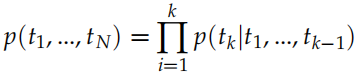 给定一个长度为 N 的句子,假设为 t1, t2, ..., tN,语言模型会计算给定 t1, ..., tk−1 的条件下出现 tk 的概率: