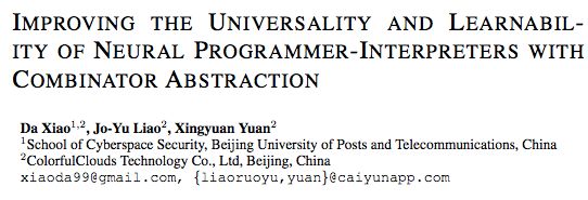 论文:IMPROVING THE UNIVERSALITY AND LEARNABILITY OF NEURAL PROGRAMMER-INTERPRETERS WITH COMBINATOR ABSTRACTION