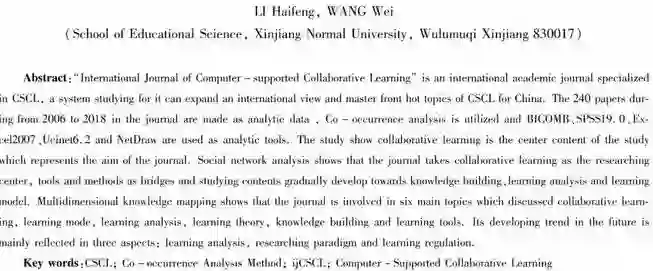 关键词:CSCL;共现分析法; ijCSCL;计算机支持的协作学习