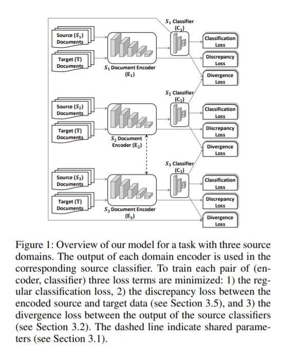 本文提出了一种新的多源无监督文本分类模型。我们的模型利用文档表示中的更新速率来动态地集成域编码器。为了对源分类器进行配对,它还采用了一种概率启发式来推断目标域中的错误率。我们的启发式利用数据转换成本和分类器的准确性在目标特征空间。我们使用领域自适应的真实场景来评估算法的有效性。在实验中,我们还使用了预训练好的多层变换器作为文档编码器,以证明领域自适应模型所取得的改进是否可以通过预训练的语言模型来实现。实验证明,我们的模型是在这种情况下性能最好的方法。