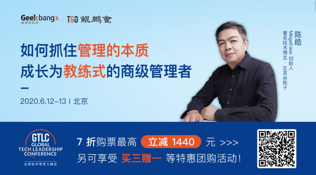 希望您在关注 TGO 鲲鹏会、TGO 深焦栏目,坚持自我学习的同时,也能来到 2020 年 GTLC 总站(北京)的现场,亲身观看陈皓的主题演讲, 与他在线下进一步交流、探讨。6 月 12 日,北京,我们不见不散!