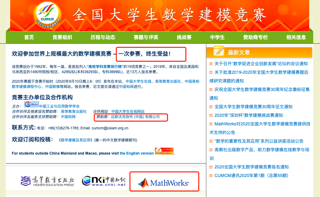 可以看到竞赛的赞助商中,MATLAB所属的MathWorks赫然在列,又赞助又不让用,这个操作着实有点迷人。MathWorks受限于川普的禁令,可能也是哑巴吃黄连,有苦说不出。