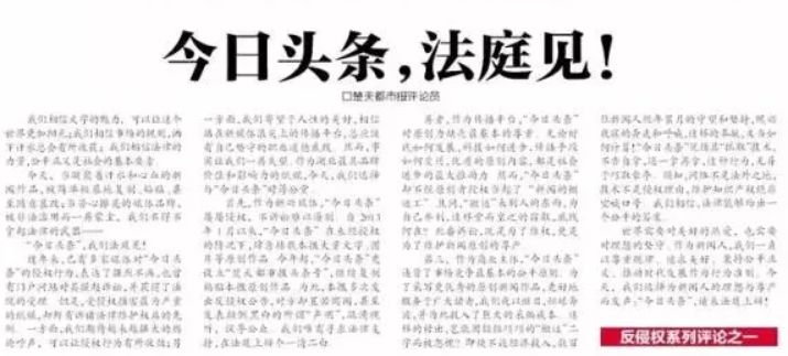 《楚天都市报》把今日头条告上法庭