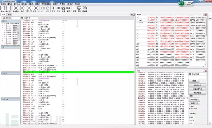 这里可以看到内存窗口中地址和CE的地址内容是一致的,但是不能在CE的内存中直接下断点,因为CE里的代码都是基于INTELCPU的汇编,而模拟器里面可以直接显示POWERPC汇编,在模拟器的内存中下断点可以直接定位到powerpc指令。