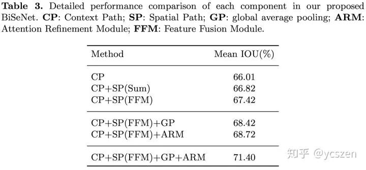 文中还对BiSeNet的各个部分进行了消融分析实验。