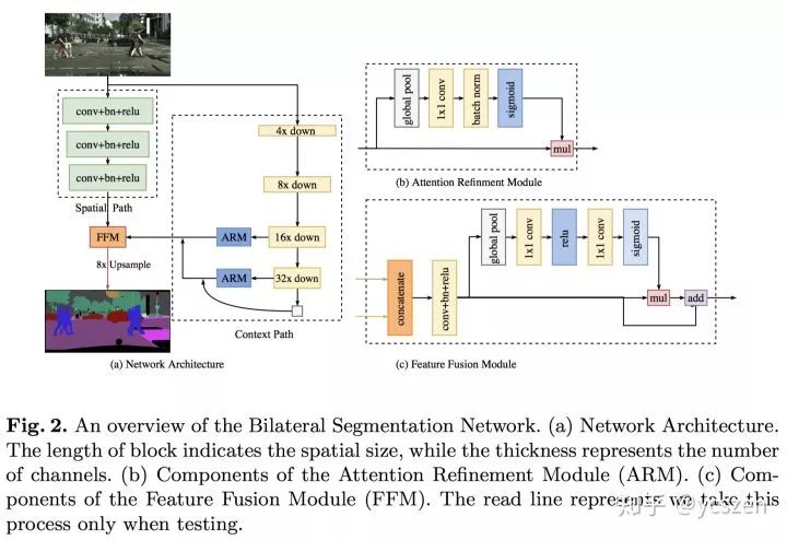 详细解读请见:ECCV 2018 | 旷视科技提出双向网络BiSeNet:实现实时语义分割(https://zhuanlan.zhihu.com/p/41475332)。
