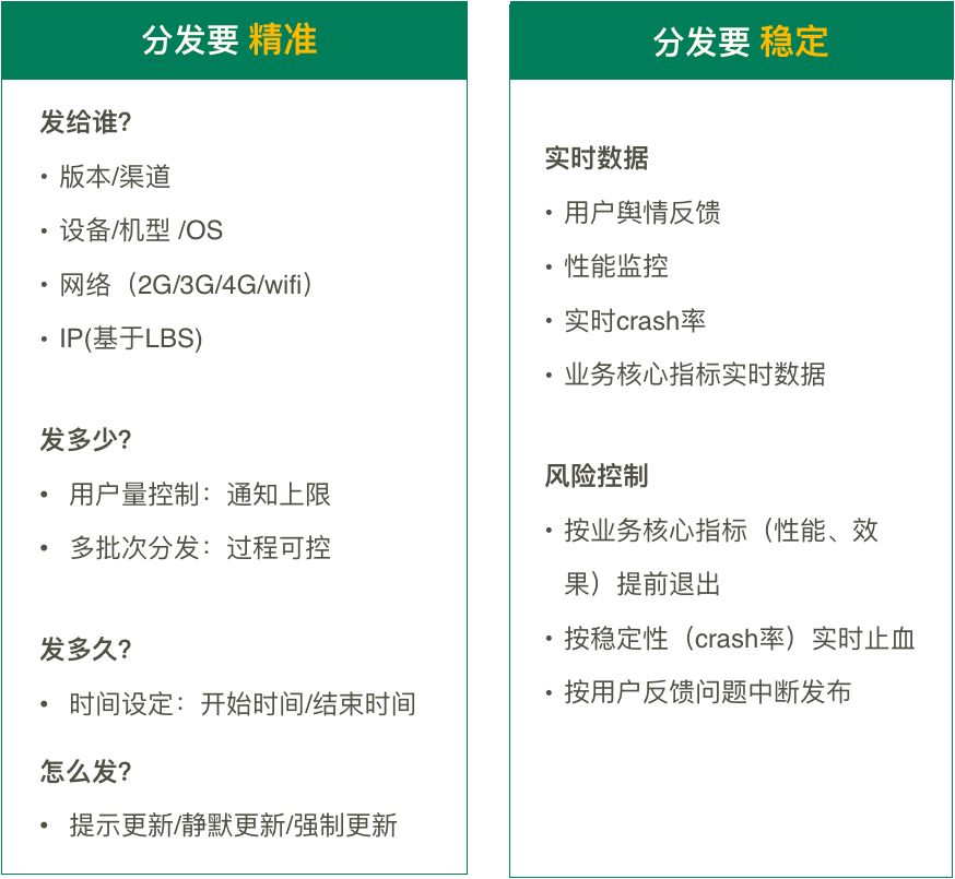 客户端灰度发布,针对品牌、机型、操作系统、灰度人数等维度选取部分用户进行多批次缓慢放量,在此过程中进行稳定性数据监控、实时收集用户体验反馈等操作,进而决定是否继续放大新版本投放范围。经过多轮灰度后,版本的质量、稳定性、用户体验都得到了充分的验证,便一鼓作气升级全量发布。