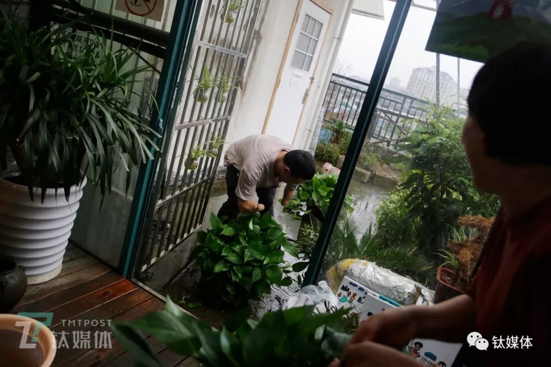 倪敏成的女友是一名画家。6月19日,浙江金华,倪敏成来到在女友画室,外面下起雨,他帮女友把绿植拿到阳台上淋雨。