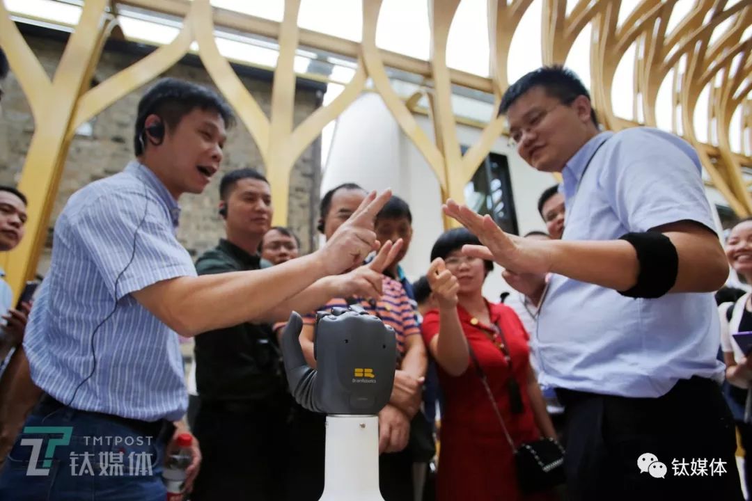 6月17日,杭州梦想小镇,双创周活动现场,黄琦向观众演示假手控制。