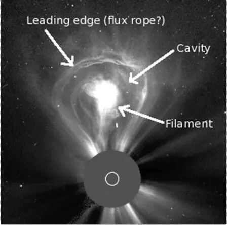 图3.可见光日冕仪SOHO/LASCO C3 中的CME及其三分量结构 | 图源:NASA