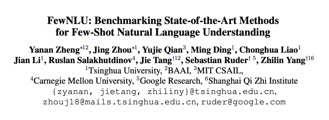 评价准则的差异极大阻碍了已有小样本学习方法基于统一的标准公平比较,也无法客观评价该领域的真实进展。近期,来自清华大学、DeepMind 等团队研究者在论文《FewNLU: Benchmarking State-of-the-Art Methods for Few-Shot Natural Language Understanding》中指出:现有小样本学习方法并不稳定有效,且目前已有工作不存在单一的小样本学习方法能够在大多数 NLU 任务上取得优势性能。小样本自然语言理解领域发展依然面临着严峻的挑战!该工作被 ACL 2022 主会接收。