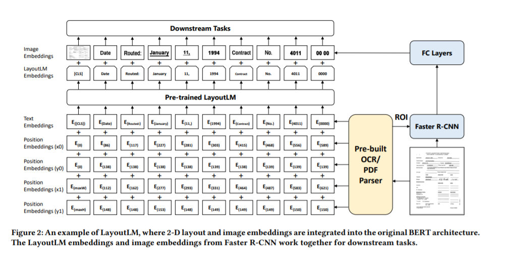 大量的研究成果表明,大规模预训练语言模型通过自监督任务,可在预训练阶段有效捕捉文本中蕴含的语义信息,经过下游任务微调后能有效的提升模型效果。然而,现有的预训练语言模型主要针对文本单一模态进行,忽视了文档本身与文本天然对齐的视觉结构信息。为了解决这一问题,研究员们提出了一种通用文档预训练模型LayoutLM[1][2],选择了文档结构信息(Document Layout Information)和视觉信息(Visual Information)进行建模,让模型在预训练阶段进行多模态对齐。