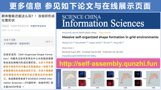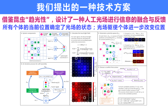 动漫电影《超能陆战队》中设想有一种磁力机器人能够大规模地聚集在一起,组成各种形状。而我们的研究目标是:能否采用“探索-融合-反馈”基本原理实现大规模群体在非中心控制情况下的自我成型。