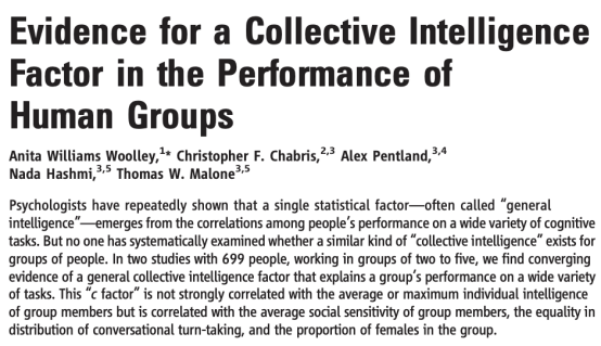 敏感度、个体对话平等度、以及群体中女性比例等三个因素。在一定程度上印证了“三个臭皮匠,顶过一个诸葛亮”。