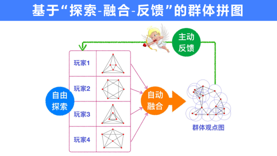 第三是反馈,融合活动产生的群体信息通过某种方式反馈给个体刺激个体进行持续地探索。