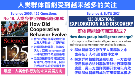 在2021年,Science和上海交通大学合作,再次提出125个问题,其中明确提出了群体智能如何涌现形成?