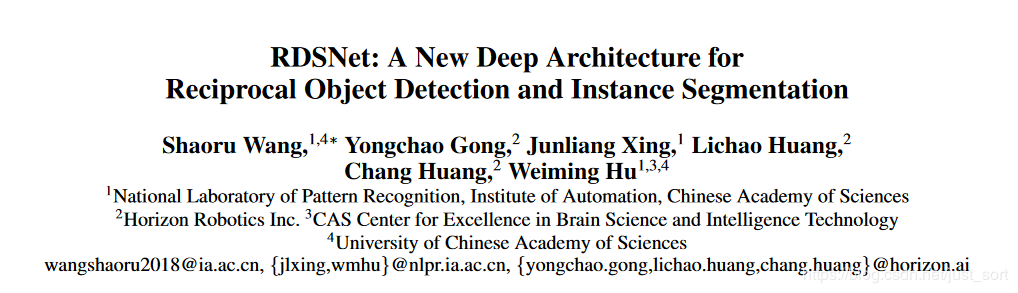 本文对《RDSNet: A New Deep Architecture for Reciprocal Object Detection and Instance Segmentation》进行解读,论文提出了用于统一目标检测和实例分割的新型网络 RDSNet。