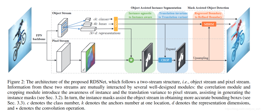 RDSBet的核心是双流结构,即目标流和像素流。这两个流共享同一个FPN骨干网络,然后分开处理每种任务。目标流关注目标级别的信息,包括目标的类别和位置等,而像素流的主要关注的是像素级信息并且遵循了FCN的设计。