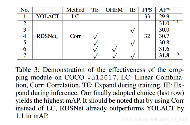 下面的Table3展示了相比于YOLACT,本文的RDSNet提升了近2个mAP值,证明了这种方法的有效性。