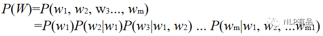 给定一个词序列,W = w1,w2, … , wm,计算这个词序列能够组成一句合理自然语言的联合概率 P(W):