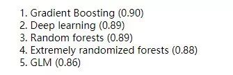 运行完成后,函数会返回所尝试各模型的准确度,以及每个模型的最佳参数,由于模型尝试的深度学习是全连接网络,因此效果不好,如果使用CNN,可以将模型的准确度提升到0.92
