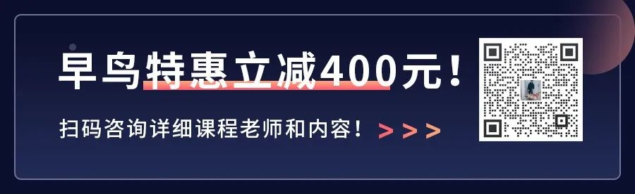 早鸟特惠,报名立减400元,感兴趣的小伙伴,立即扫描下方二维码,加学习顾问老师咨询。