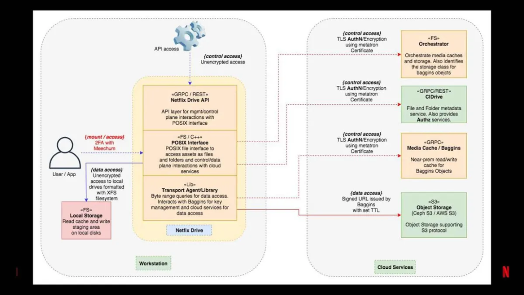 图 8:Netflix Drive 服务在本地工作站和云之间的划分