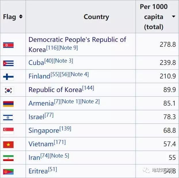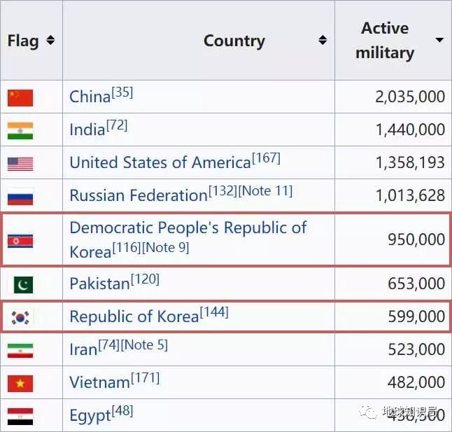 朝鲜每千人军事人员比例真高的吓人,是韩国的三倍