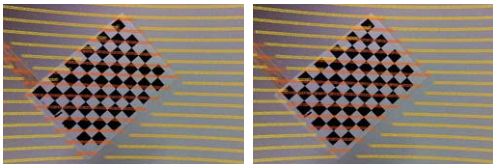 图4 左:在雷达-相机外部标定后,重投影雷达点到图像平面上;右:链式地标定lidar-imu,imu-camera后,重投影雷达点到图像平面上