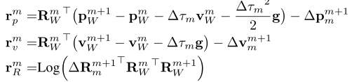 IMU因子是对IMU位姿和速度的约束。联合残差计算如下: