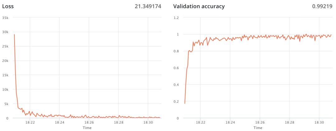 如上所述,你可以轻松地在FloydHub上发布与工作相关的训练度量指标。当你在FloydHub的dashboard上查看任务时,可以很容易地为每个指标找到相应的实时图表。这个特性并不是要取代Tensorboard,而是由所选择的超参数配置来突出训练的状态。