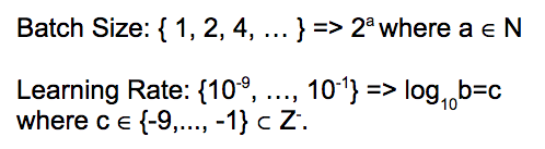 例如,使用批量大小的值作为2的幂指数,并且在日志中对Learning Rate进行抽样是很常见的。