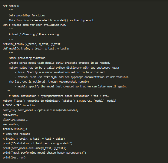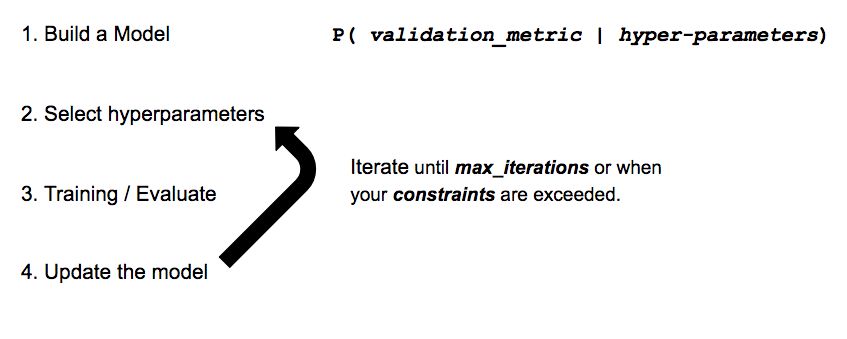 贝叶斯策略建立了一个代理模型,试图从超参数配置中预测我们所关注的度量指标。在每一次的迭代中,我们对代理会变得越来越有信心,新的猜测会带来新的改进,就像其它搜索策略一样,它也会等到耗尽资源的时候终止。