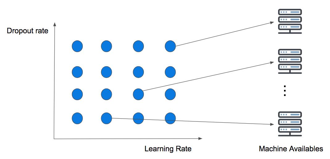 这种策略没有考虑到计算背景,但这意味着可用的计算资源越多,那么同时可以尝试的猜测就会越多。它的痛点被称为维度灾难,意思是我们增加的维度越多,搜索就会变得越困难,最终导致策略失败。
