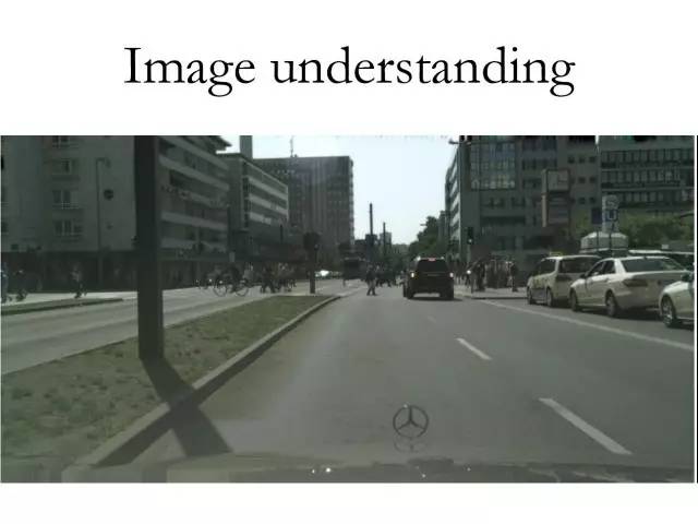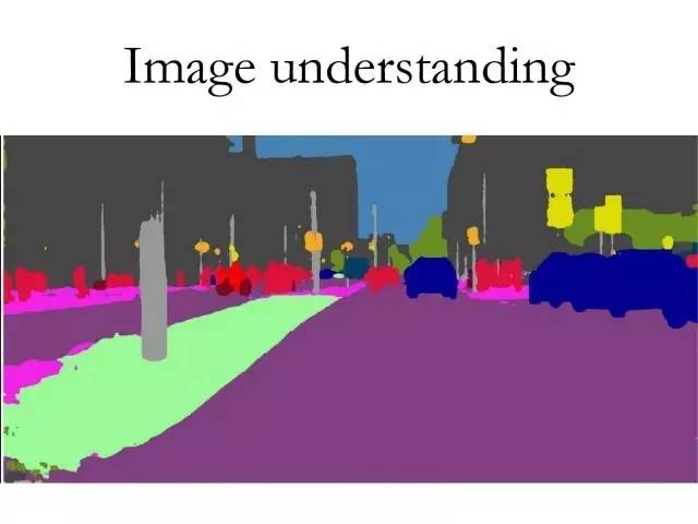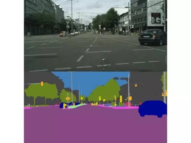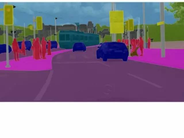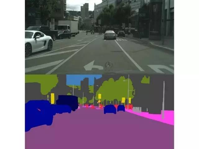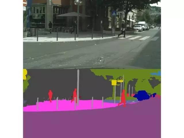 这幅图像是Cityscapes——自动驾驶相关的数据集上做的一个像素标记的结果。