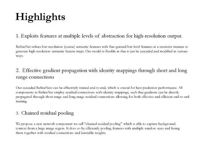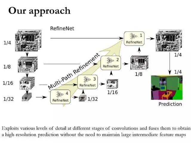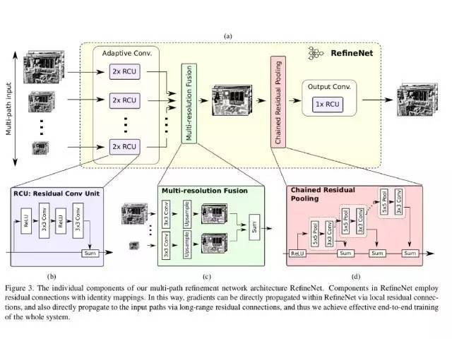 3. 在卷积神经网络中,重复的下采样操作,池化或者步长大于一的卷积都会导致特征图的分辨率下降。我们提出RefineNet通过residual connections使得较深层的网络也可以利用浅层网络的特征。