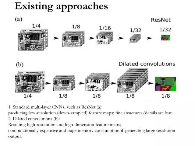 a) 第一种用ResNet,当然VGG也是一样,如果用步长大于1的卷积或者做一次池化的话,网络中的特征图的分辨率会被降采样,最后一般会得到一个原输入图片的1/16或者1/32的低分辨率的输出。