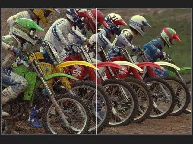比如可以去这样一些马赛克噪声,左边的是将JPEG的压缩比设置为50%时的图像,得到这种马赛克噪声图像,右边是网络的输出。