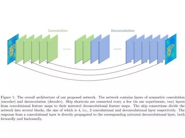 我们提出了一个很简单的模型,前面一部分是编码器,后面一部分是解码器,然后为了更好的进行训练,在编码器和解码器之间加了一些连接捷径。一个直观的解释就是:可以把信息从前面层直接传递到后面的解码器层。这样也就更容易学到关于这个问题的一些特征。